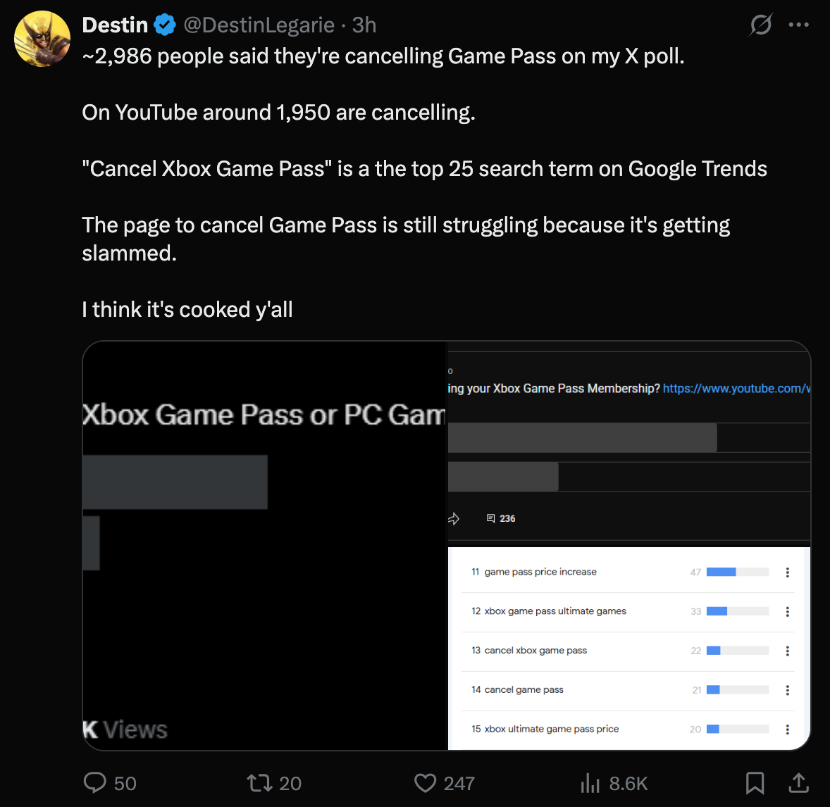 "Cancel Xbox Game Pass" تاپ ۲۵ سرچ گوگل شده . هنوز هم سایت کنسل کردن گیمپس به دلیل مراجعه زیاد اختلال داره .
