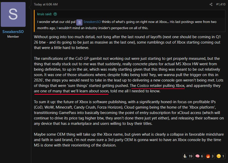 «بدون ورود به جزئیات زیاد، مدت کوتاهی پس از آخرین موج اخراجها (موج بعدی هم در سهماههی اول سال ۲۰۲۶ خواهد بود و به همان اندازه گسترده است)، زمزمههایی از داخل Xbox به گوش رسید که باورشان سخت بود.