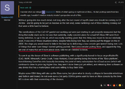 در یک پست که در انجمن NeoGAF منتشر شده، کاربری با نام SneakersSO – که قبلاً نیز بهدرستی از تغییر جهت مایکروسافت بهسمت انتشار بازیهای مولتیپلتفرم و جایگزینی برخی کارکنان با ابزارهای هوش مصنوعی در مایکروسافت خبر داده بود – شایعهای بزرگ دربارهی آیندهی سختافزار Xbox مطرح کرد.