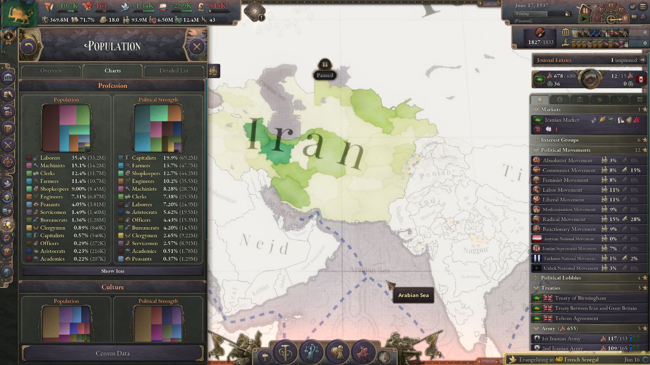 تمرکز این بازی روی انقلاب صنعتی، تفکرات جدید سیاسی ، تجارت و استعمار آفریقاست. تو این بازی شما به طور مستقیم با مردمتون سروکار دارین، هر کدوم از مردم تو هرنقطه از دنیا، با فاکتورهایی مثل ملیت، دین، شغل، طبقهی اقتصادی، وضعیت اقتصادی، عقاید سیاسی ، نیازها و سواد مشخص میشن و شما وظیفه حکومت کردن و راضی نگه داشتن اونا رو به عهده دارین.