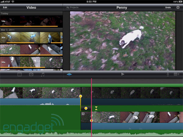 iMovie برای iPad بود آنطور که GarageBand محصولی انقلابی بود متفاوت به شمار نمی رود ، اما برنامه قادر است ده ها ابزار برای ویرایش همزمان ویدئو برای کاربر فراهم کند و این امکانات را با قیمتی ارزان فقط ۴٫۹۹ دلار پیش روی او بگذارد. در نسخه جدید که روح تازه ای در کالبد آن دمیده شده (نسبت به همین برنامه در آی فون)، iMovie اکنون به کابر اجازه می دهد که هر دو نوع فیلم های گرفته شده با دستگاه و همچنین فایل های ویدئویی ایمپورت شده را در یک محیط لمسی جذاب که در واقع مبتکرانه تر از همتای خود در رایانه های دسکتاپی است (حداقل در برخی موارد) ویرایش کنید.
