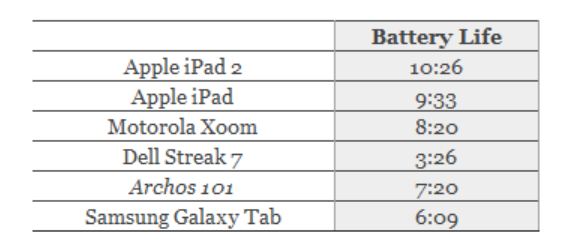 در آزمون تماشای فایل تصویری استانداردی که روی آیپد ۲ به مرحله اجرا قرار دادیم (بدین شکل که یک کلیپ های ویدیویی با فرمت MPEG4 را به صورت لوپ تکرار شونده روی دستگاه پخش می کنیم، وای فای روشن، و روشنایی صفحه نمایش در حدود ۶۵ درصد است) ، ۲ iPad موفق شد مدت شگفت آور ۱۰ ساعت و ۲۶ دقیقه پخش بدون توقف را برای خود ثبت کند. این عدد نه تنها درستی ادعای اپل را ثابت کرد بلکه نزدیکترین رقیب آیپد ۲ – یعنی موتورلاXoom را با حدود ۲ ساعت عمر بیشتر شکست داد. که این مدت به تنهایی برای تماشای یک فیلم دیگر کافیست!!