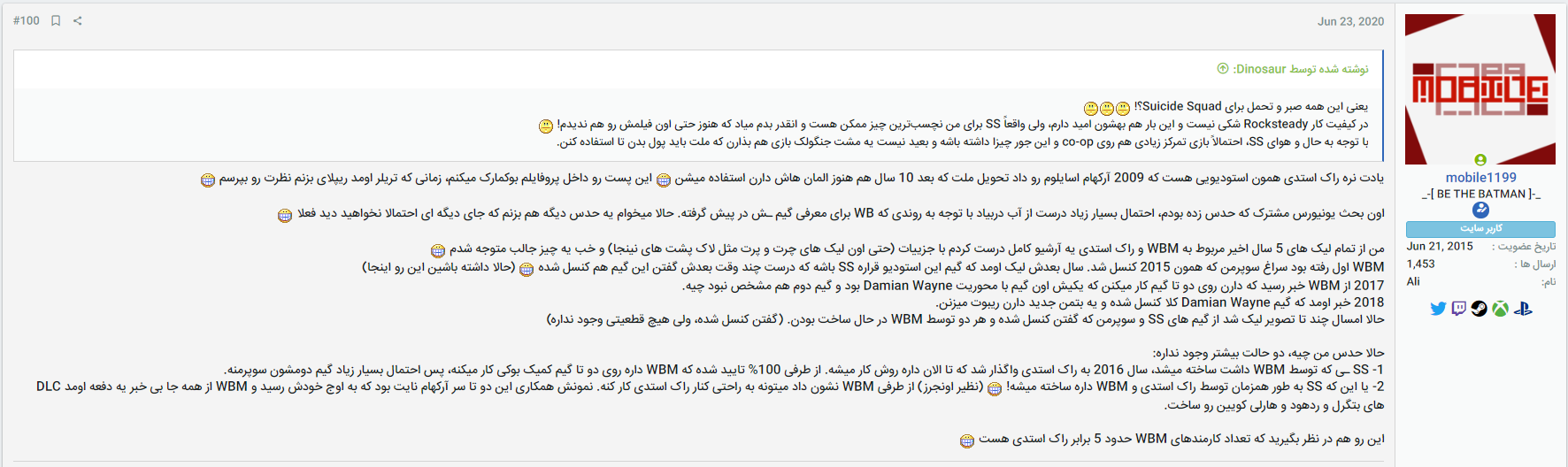 فکر کنم دلیل اصلی بدبینی به بازی، فیلم مضخرفی هست که سال 2016 از SS اومد و کلا ذهنیت بدی از اینا برای ملت به وجود آورد.