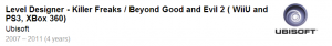 ولی طبق روزمه طراح مراحل استدیو Ubisoft Montpellier بازی BG&E2 از سال 2007 تا 2011 مدت 4 ساخت در حال ساخت بوده. او این بازی را در رزومه خود بین دو پروژه از ZombiU قرار داده است. پلتفرمهای او برای Beyond Good & Evil 2 ذکر کرده است شامل: Xbox 360،PS3 و Wii U است و نسخهای PC درکار نیست.